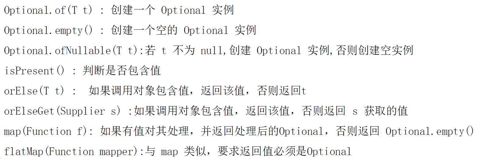 5、最大化减少空指针异常 Optional: 通过Optional容器类来提供一些解决方法,最大化避免空指针异常