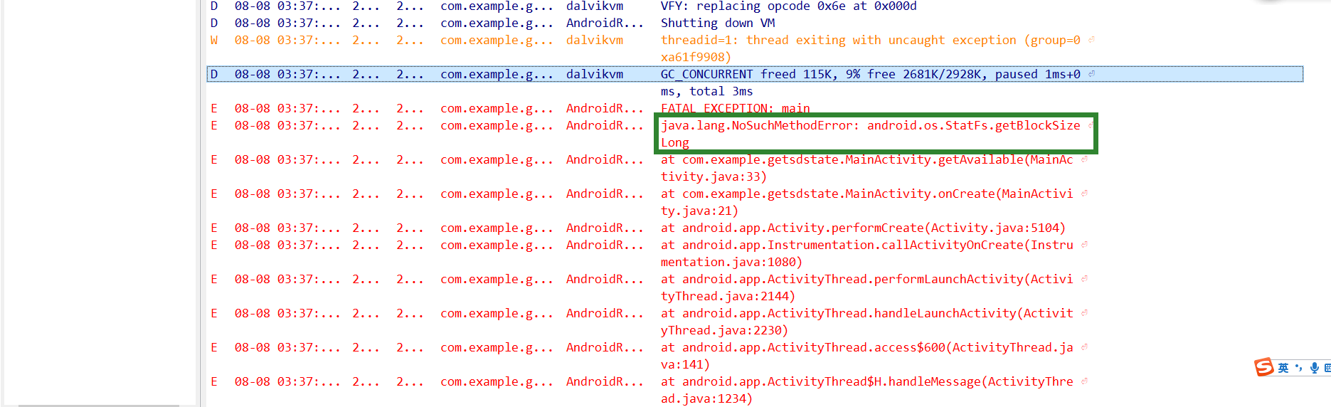 tv.setText("总空间:"+allSize+" 可用空间"+available);