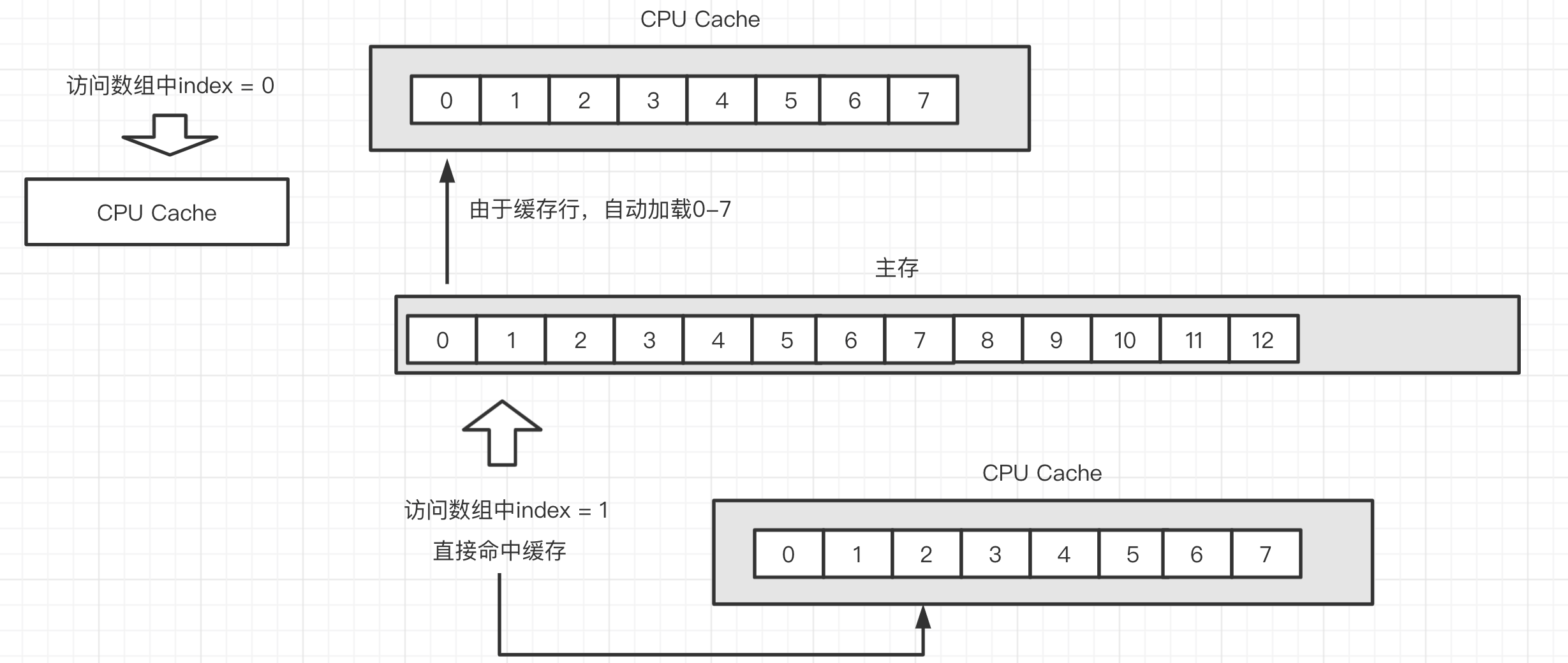 当CPU执行运算的时候,它先去L1查找所需的数据、再去L2、然后是L3,如果最后这些缓存中都没有,所需的数据就要去主内存拿。走得越远,运算耗费的时间就越长。所以如果你在做一些很频繁的事,你要尽量确保数据在L1缓存中。