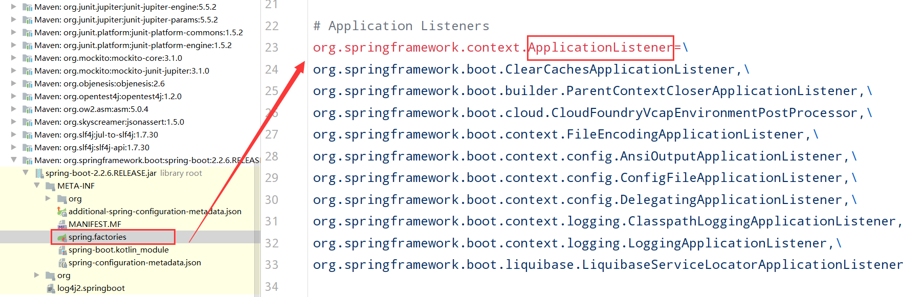 3、setListeners:使用 SpringFactoriesLoader查找并加载classpath下 META-INF/spring.factories文件中的所有可用的 ApplicationListener
