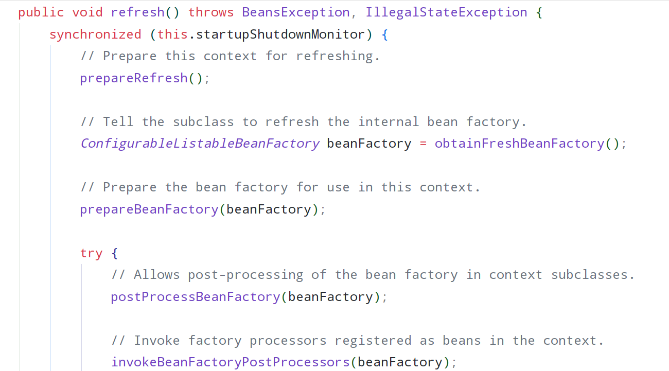 下面一起来看下refreshContext(context) 这个方法,这个方法启动spring的代码加载了bean,还启动了内置web容器: