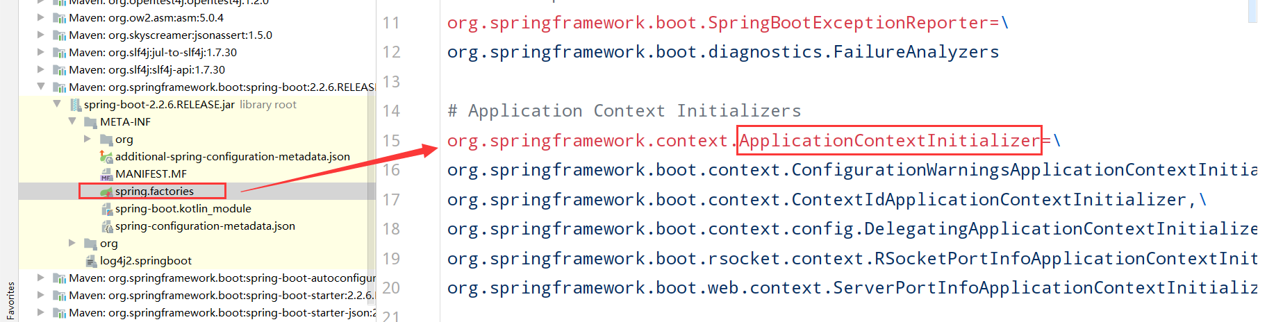 2、setInitializers:使用SpringFactoriesLoader查找并加载classpath下 META-INF/spring.factories文件中所有可用的 ApplicationContextInitializer