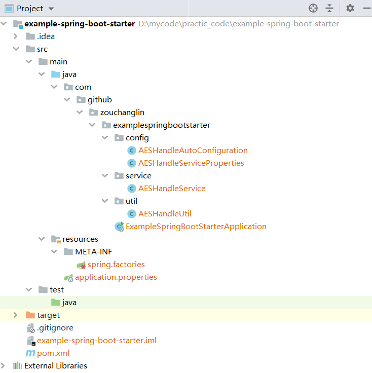 由于我们需要用户去自定义一些参数,那么我们先用一个类把自定义参数给装起来,AESHandleServiceProperties.java:如果对这些注解有疑问的话可以参考我的一篇文章《 SpringBoot自定义配置文件 》,里面对SpringBoot自定义配置的操作解释的比较详细。