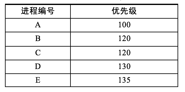 那么在一个执行周期,被选中的进程依次是先A,然后B和C,随后是D,最后是E。