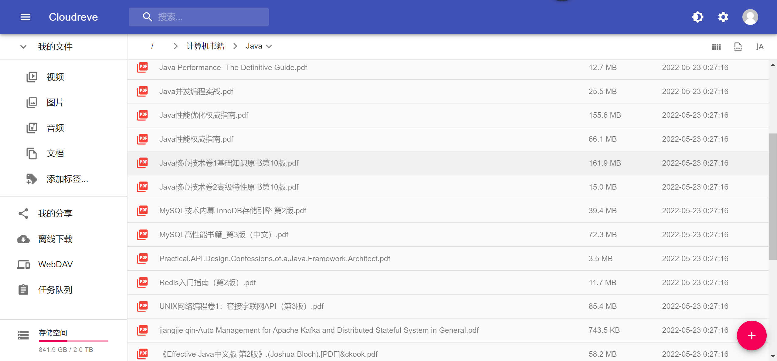 一个私有网盘系统,通过 Aria2 支持离线下载,可使用多个从机节点分担下载任务。可以设多用户,如果是多个人使用的话Cloudreve是一个不错的选择,如果没有个人隐私性文件感觉Cloudreve意义不大,因为直接设置SMB、Webdav共享即可,不必Cloudreve这么复杂。