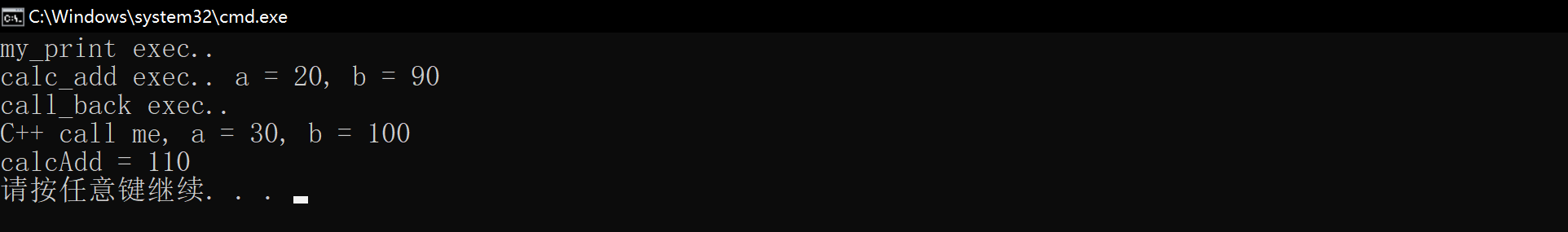 printf("my_func callback success! a = %d, b = %d\n", a, b);