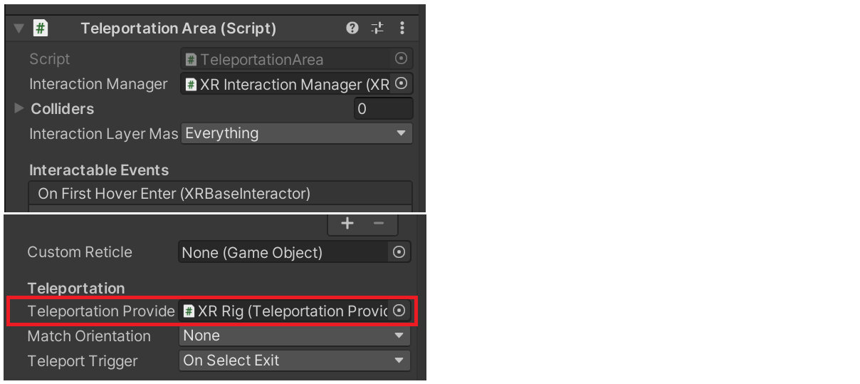 XR Rig 就是表示玩家自己,XR Rig 就是Plane的Teleprotaion