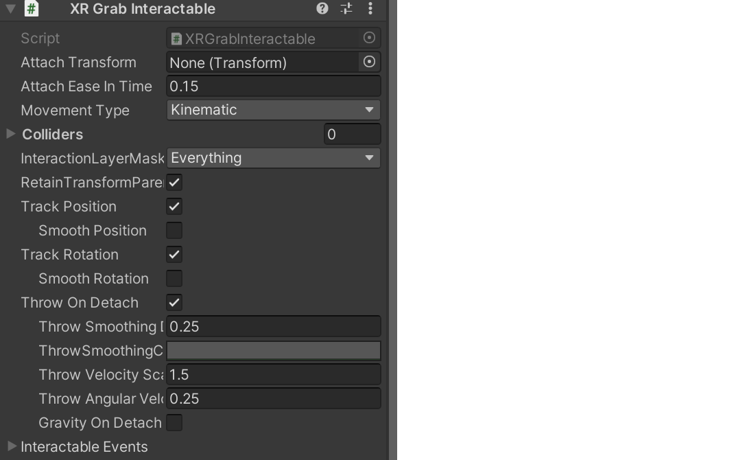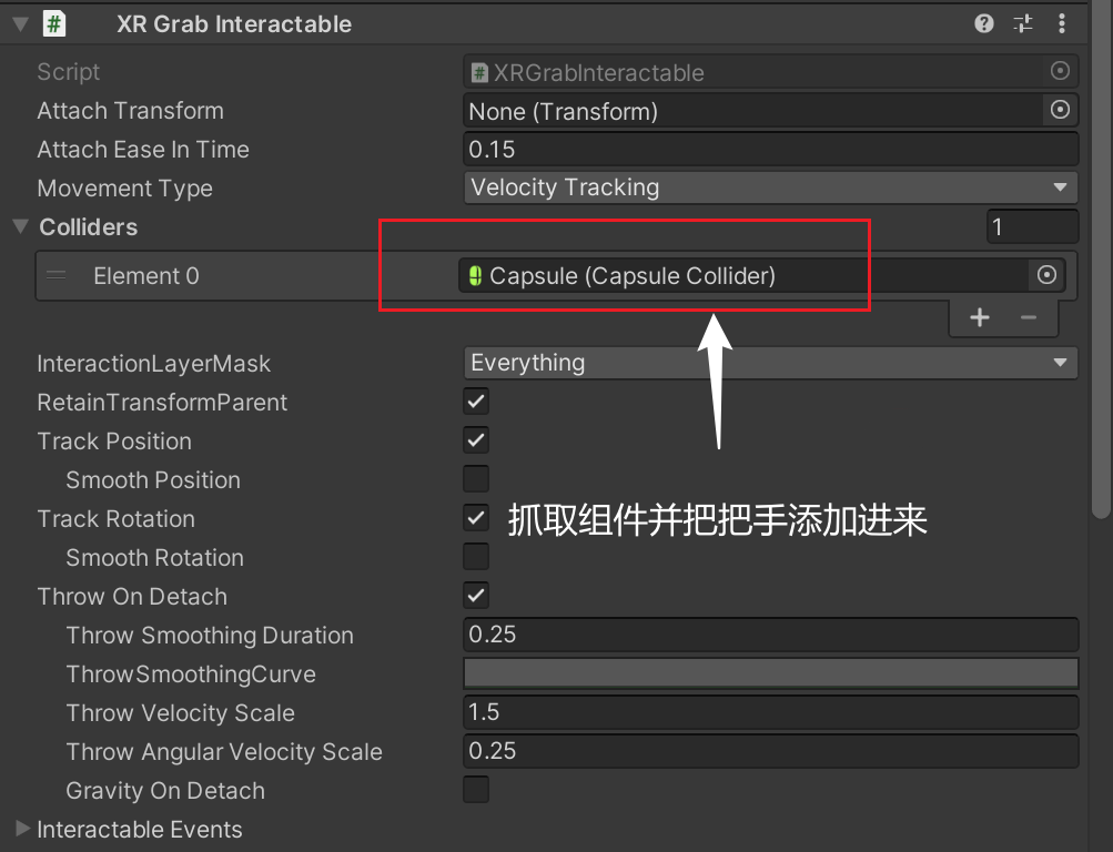 XR Grab Interactable 会有抓取的效果,但是 XR Simple Interactable就只有回调,而不是抓取。