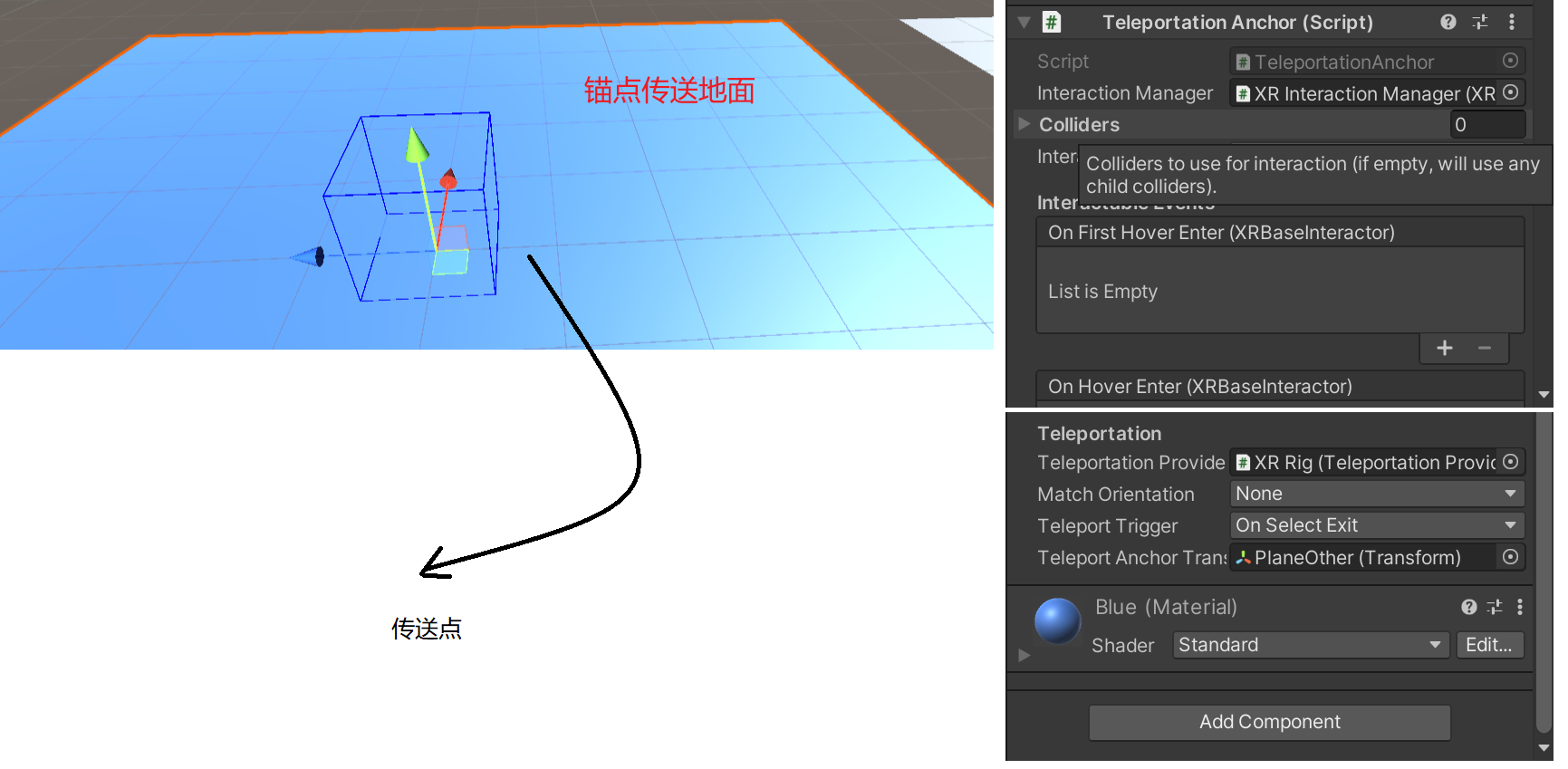 如果需要改变传送的位置,先创建空对象,在把Teleprotaion Anchor Transform 设置为创建的空对象即可。
