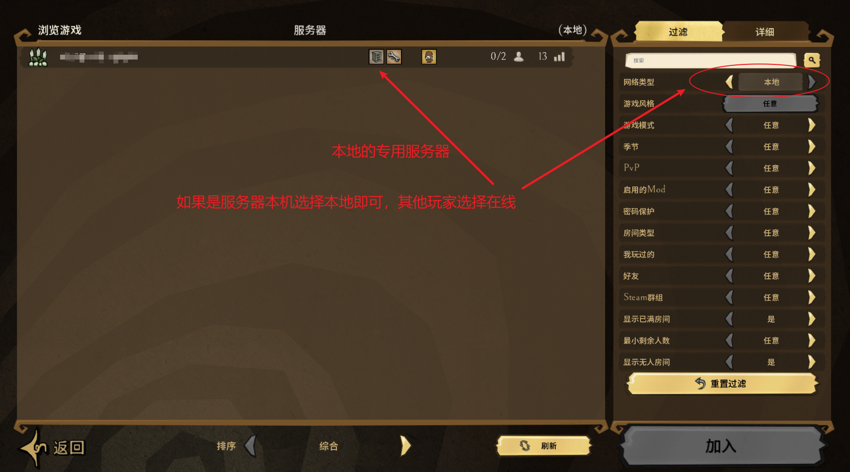 如果是本机就是服务器,那么选择本地服务器即可看到自己搭建的服务器,如果服务器是在局域网其他小伙伴哪那里,那么选择浏览游戏,选择在线类型的服务器即可,搜索创建的服务器名字(需要到LAN中才能找到世界),就能找到这个世界并加入游戏了,亲测玩到186天了也一点都不卡哦。