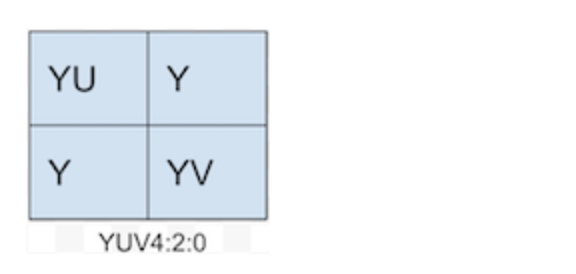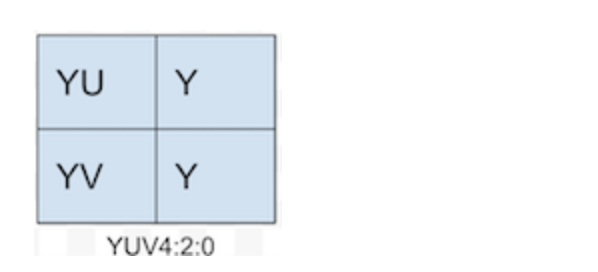 对于四个像素,YUV4:2:0格式需要4×8 + 8 + 8 = 48位,每个像素深度为12位。