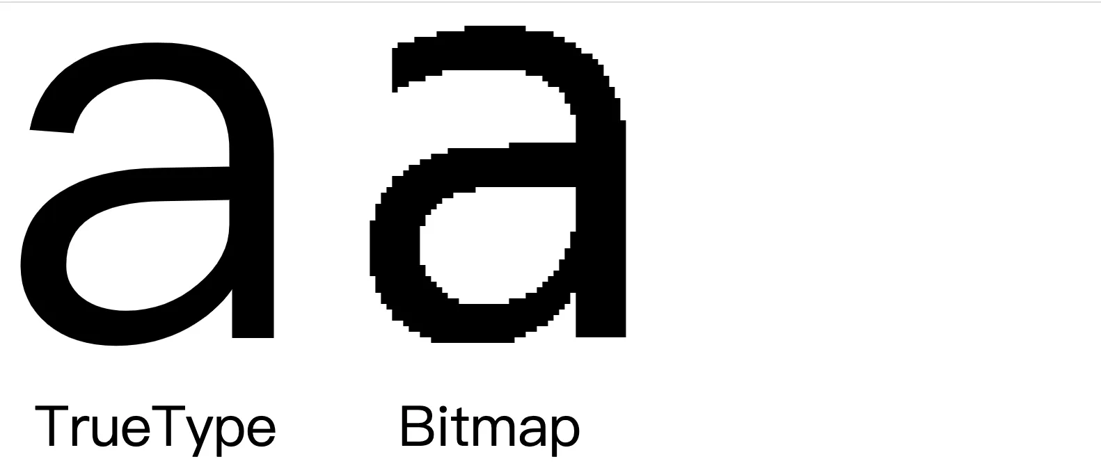 TrueType字体不是用像素或其他不可缩放的方式来定义的,它是通过数学公式(曲线的组合)来定义的。类似于矢量图像,这些光栅化后的字体图像可以根据需要的字体高度来生成。通过使用TrueType字体,你可以轻易渲染不同大小的字形而不造成任何质量损失,这样就解决了位图字体缩放后会变模糊的问题。