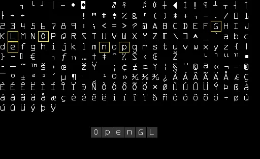 首先,它相对来说很容易实现,并且因为位图字体已经预光栅化了,它的效率也很高。然而,这种方式不够灵活。当你想要使用不同的字体时,你需要重新编译一套全新的位图字体,而且你的程序会被限制在一个固定的分辨率。如果你对这些文本进行缩放的话你会看到文本的像素边缘。比如我需要很大的字体,那么对应的文字图也需要放大,因为我们的设定的大小是固定的 10 * 10