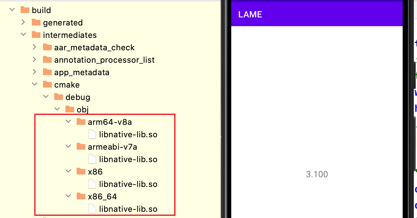 可以看到已经生成的SO库,并且也展示出了LAME 的版本,证明是OK的