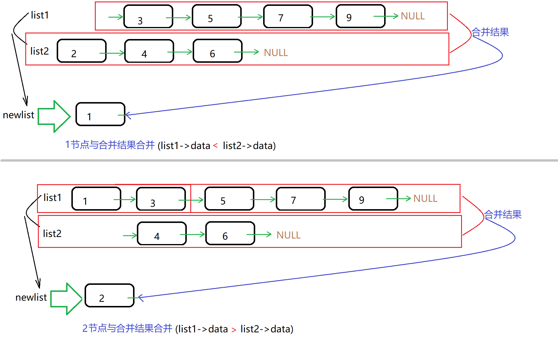 - 一是在写代码时没有对合并的过程想清楚,导致合并出来的链表不是想要的结果!