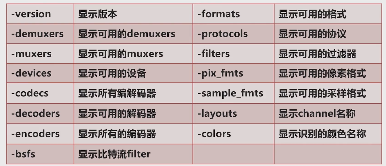 能力展示选项:列出当前源代码支持的各种能力集,例如--list- decoders