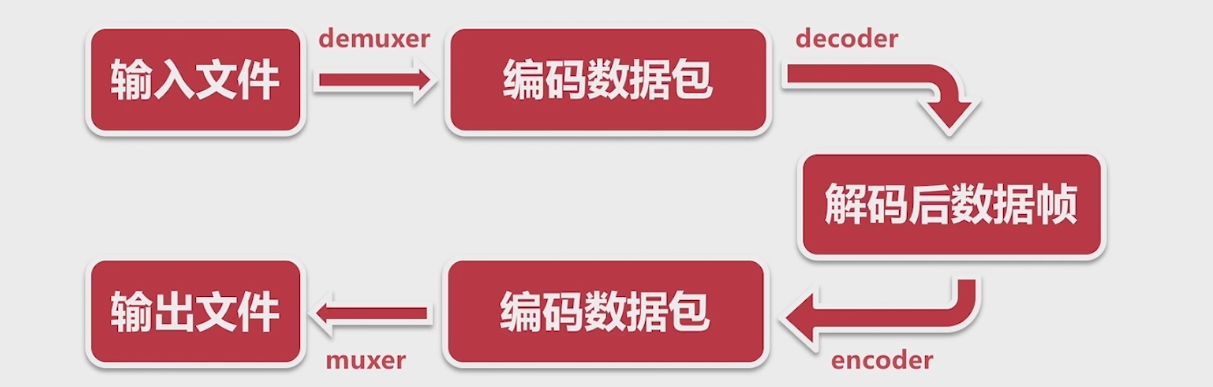 FFmpeg作为一套音视频解决方案,不但功能丰富,而且可移植性还很强,可以用在Linux、Windows、 MacOS、Android、iOS等多种平台。至于FFmpeg的名称来源呢?其实FFmpeg名称中的mpeg来自视频编码标准MPEG,而前缀FF是Fast Forward的首字母缩写。FFmpeg处理音视频的流程简图:
