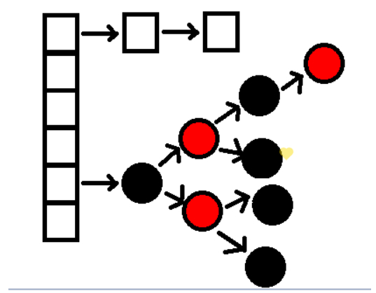 你可能还知道哈希碰撞会对hashMap的性能带来灾难性的影响。如果多个hashCode()的值落到同一个桶内的时候,这些值是存储到一个链表中的。最坏的情况下,所有的key都映射到同一个桶中,这样hashmap就退化成了一个链表——查找时间从O(1)到O(n)。