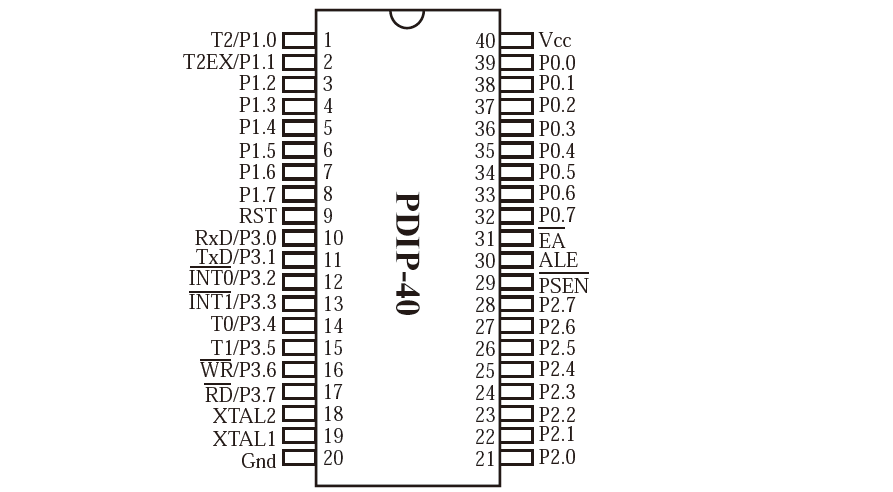 (1)电源引脚:引脚图中的VCC、GND 都属于电源引脚。 (2)晶振引脚:引脚图中的XTAL1、XTAL2 都属于晶振引脚。 (3)复位引脚:引脚图中的RST/VPD 属于复位引脚,不做其他功能使用。 (4)下载引脚:51 单片机的串口功能引脚(TXD、RXD)可以作为下载引脚使用。 (5)GPIO 引脚:引脚图中带有Px.x 等字样的均属于GPIO 引脚。GPIO 占用了芯片大部分的引脚,共达32个,分为了4组,P0、P1、P2、P3,每组为8个IO,而且在P3组中每个IO都具备额外功能,只要通过相应的寄存器设置即可配置对应的附加功能,同一时刻,每个引脚只能使用该引脚的一个功能。