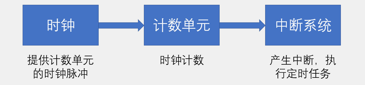 定时器在单片机内部就像一个小闹钟一样,根据时钟的输出信号,每隔一段时间,计数单元的数值就增加一,当计数单元数值增加到"设定的闹钟提醒时间"时,计数单元就会向中断系统发出中断申请,产生"响铃提醒",使程序跳转到中断服务函数中执行。