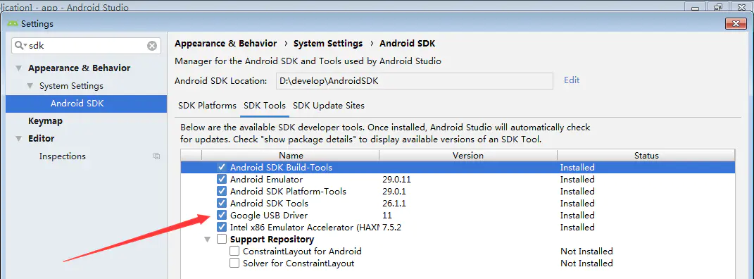 打开AndroidStudio里面就是ADB找不到设备,首先需要安装Google USB Driver