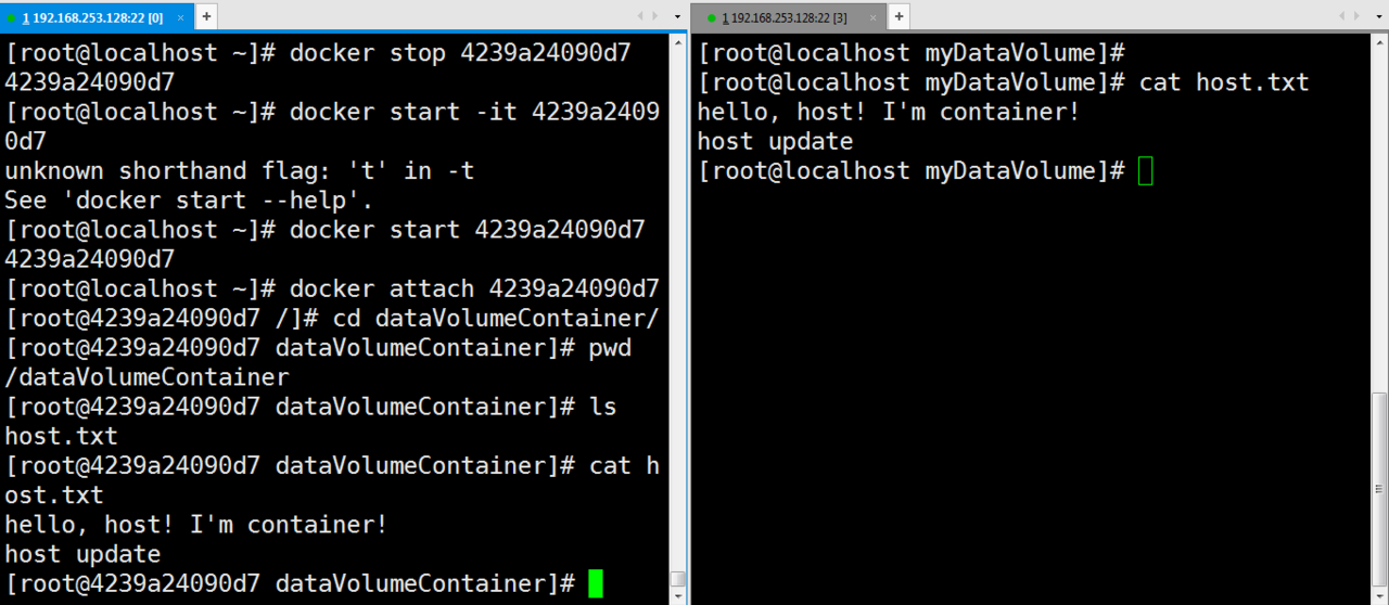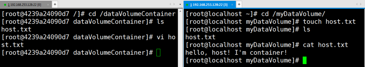 测试一下两者的文件通信共享(容器和宿主机之间数据共享)