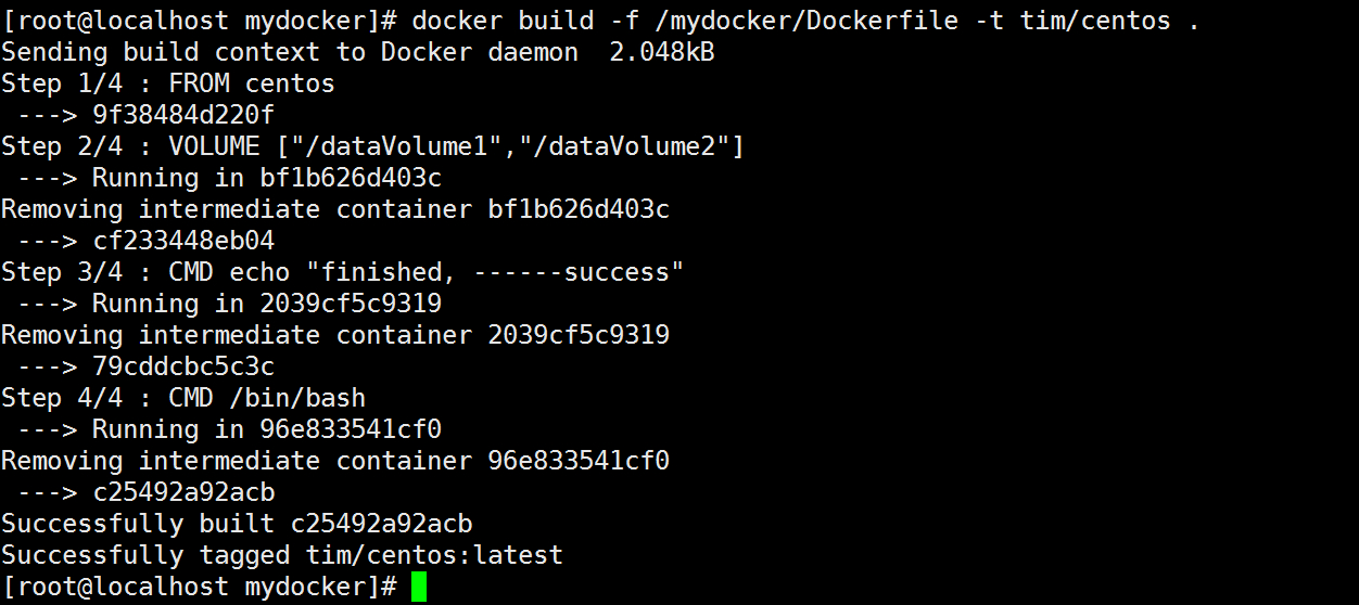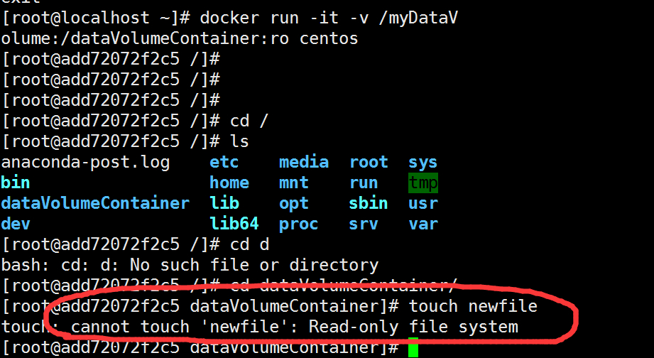 docker run -it -v /myDataVolume:/dataVolumeContainer centos