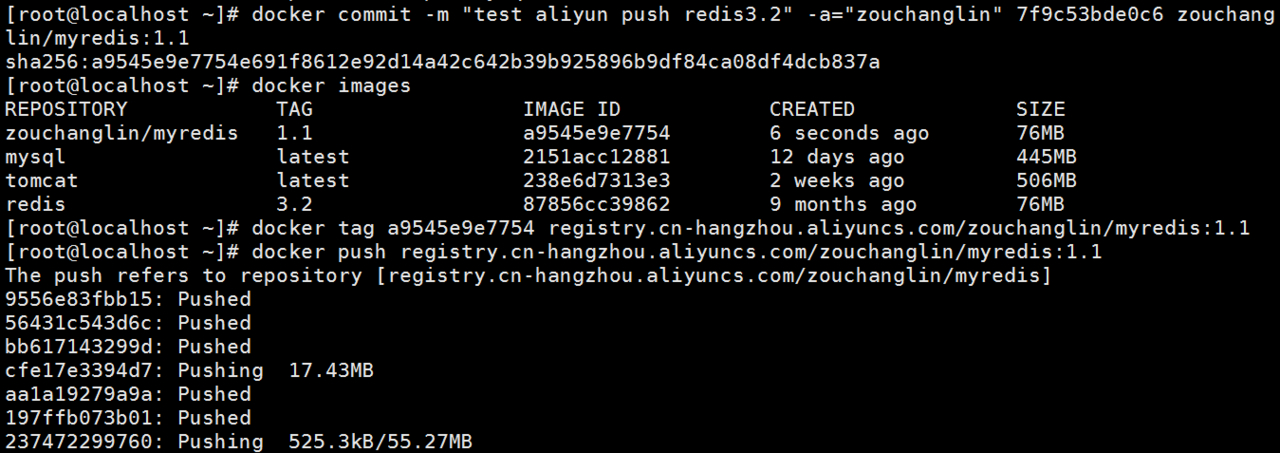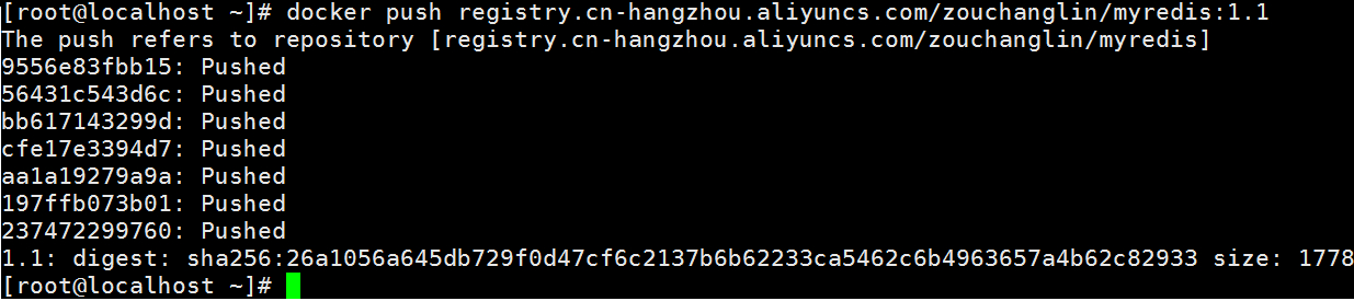 出现下面这种,即说明推送完毕(其实这和Pull是一样的,镜像分层都是一层一层的结构)