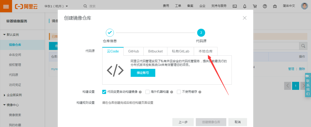 登录到阿里云的镜像服务:https://cr.console.aliyun.com/cn-hangzhou/instances/repositories