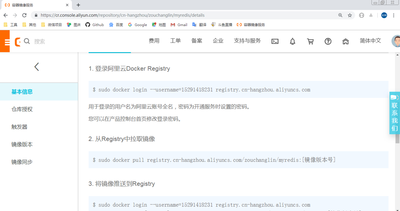将镜像推送到阿里云,推送方式阿里云文档里面就有