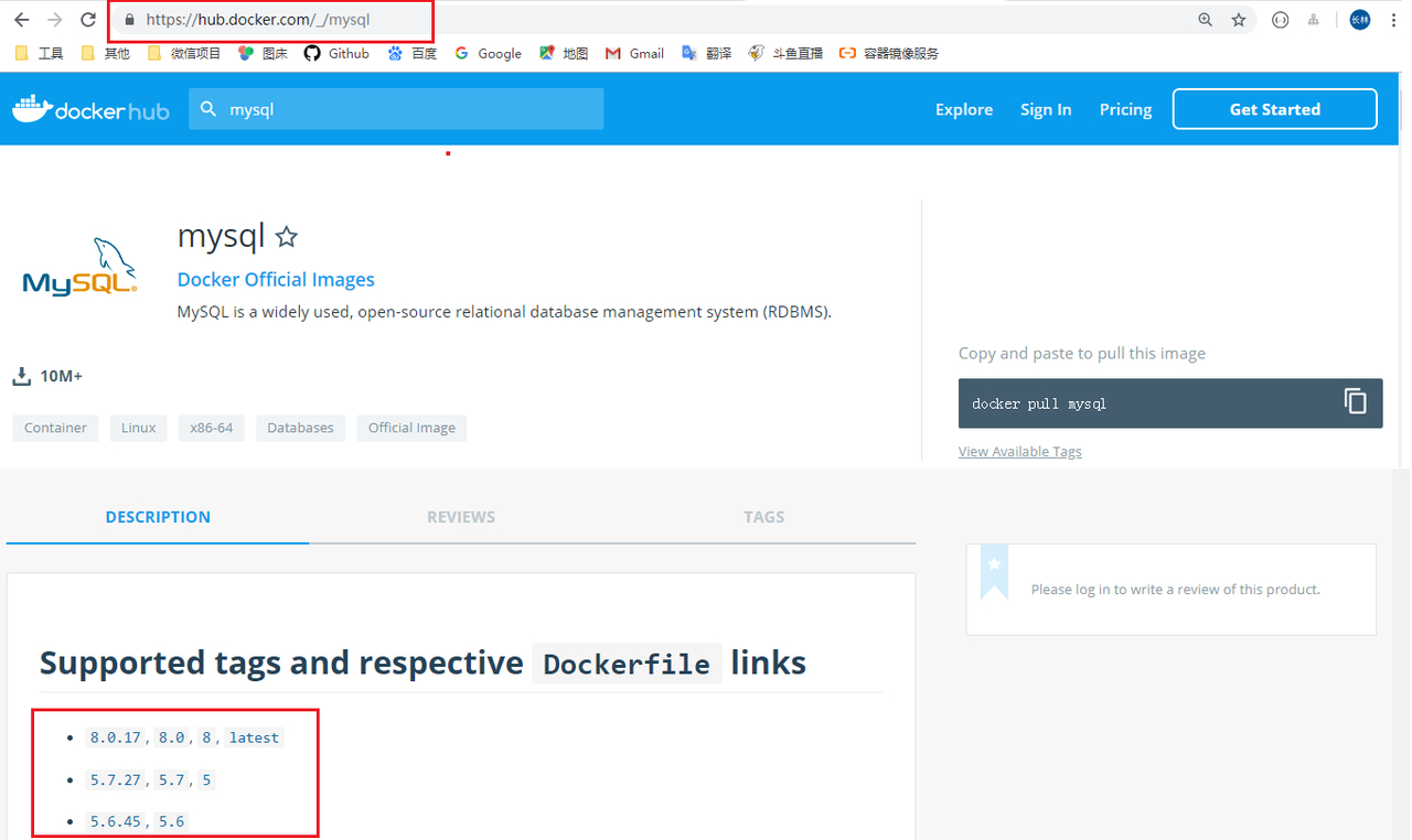 1、搜索时在 https://hub.docker.com/ 这个网站进行搜索,比如搜索MySQL