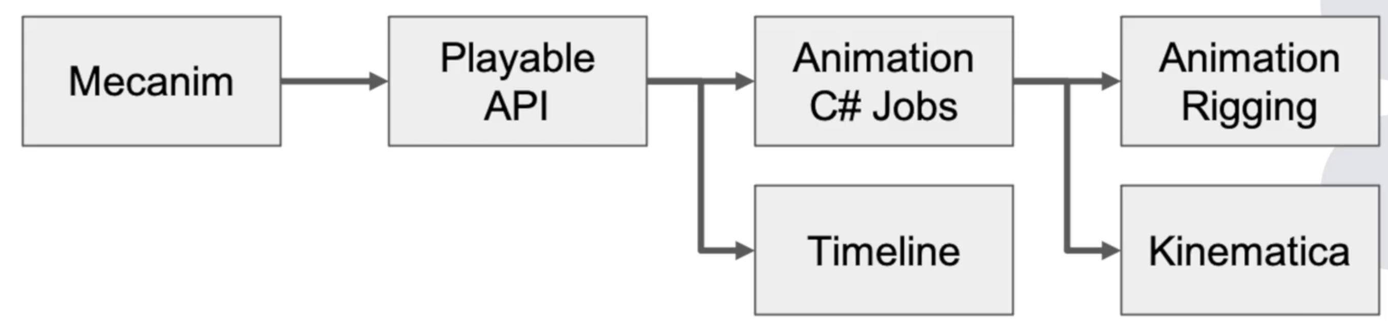 Legacy动画系统是Unity4之前的动画系统,Unity4以后引入了Mecanim,Mecanim对Animation 、Animator、Playable API这三类资源都会用到,其核心是Playable API: