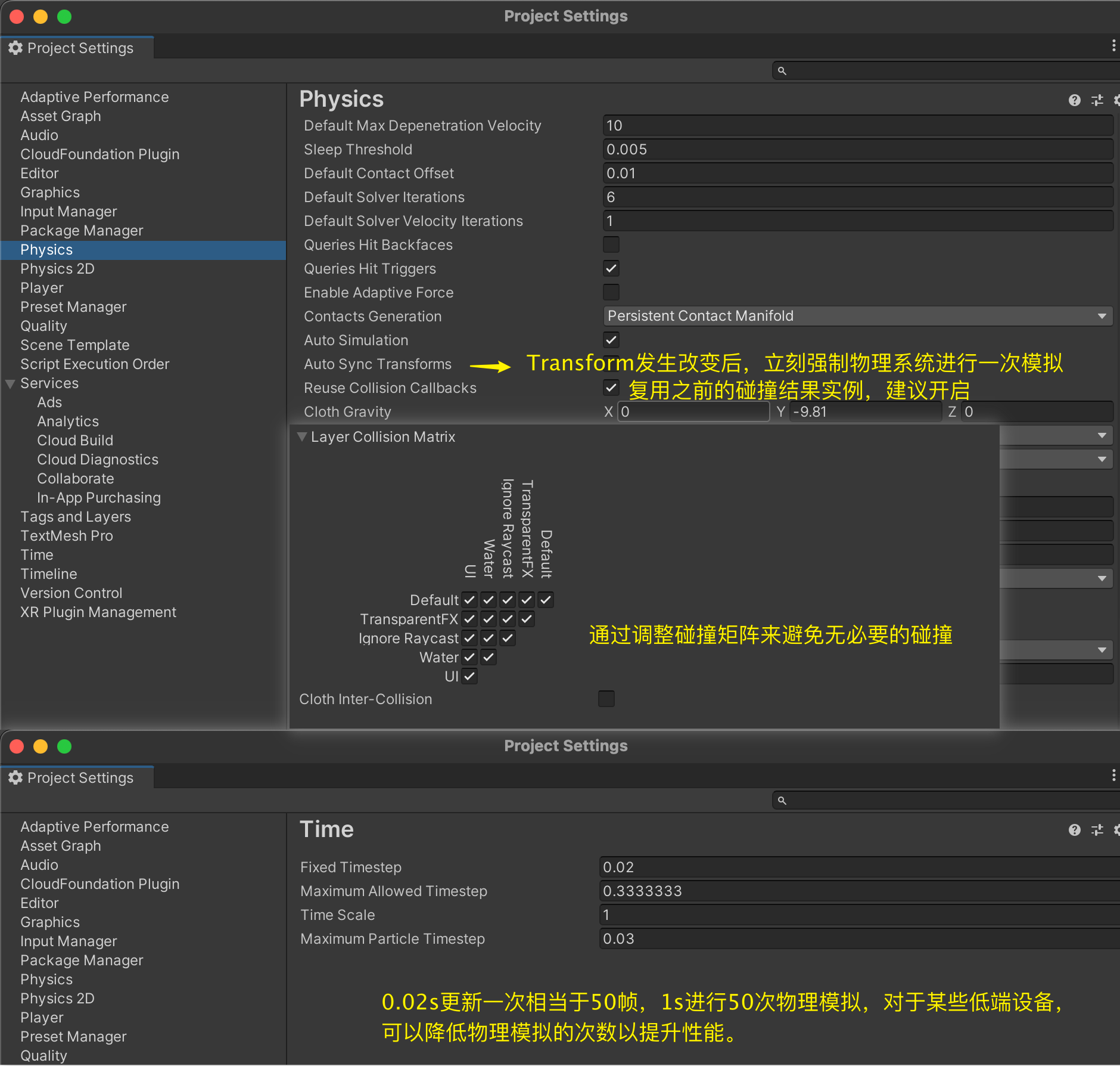Unity中的物理组件RigidBody部分的优化