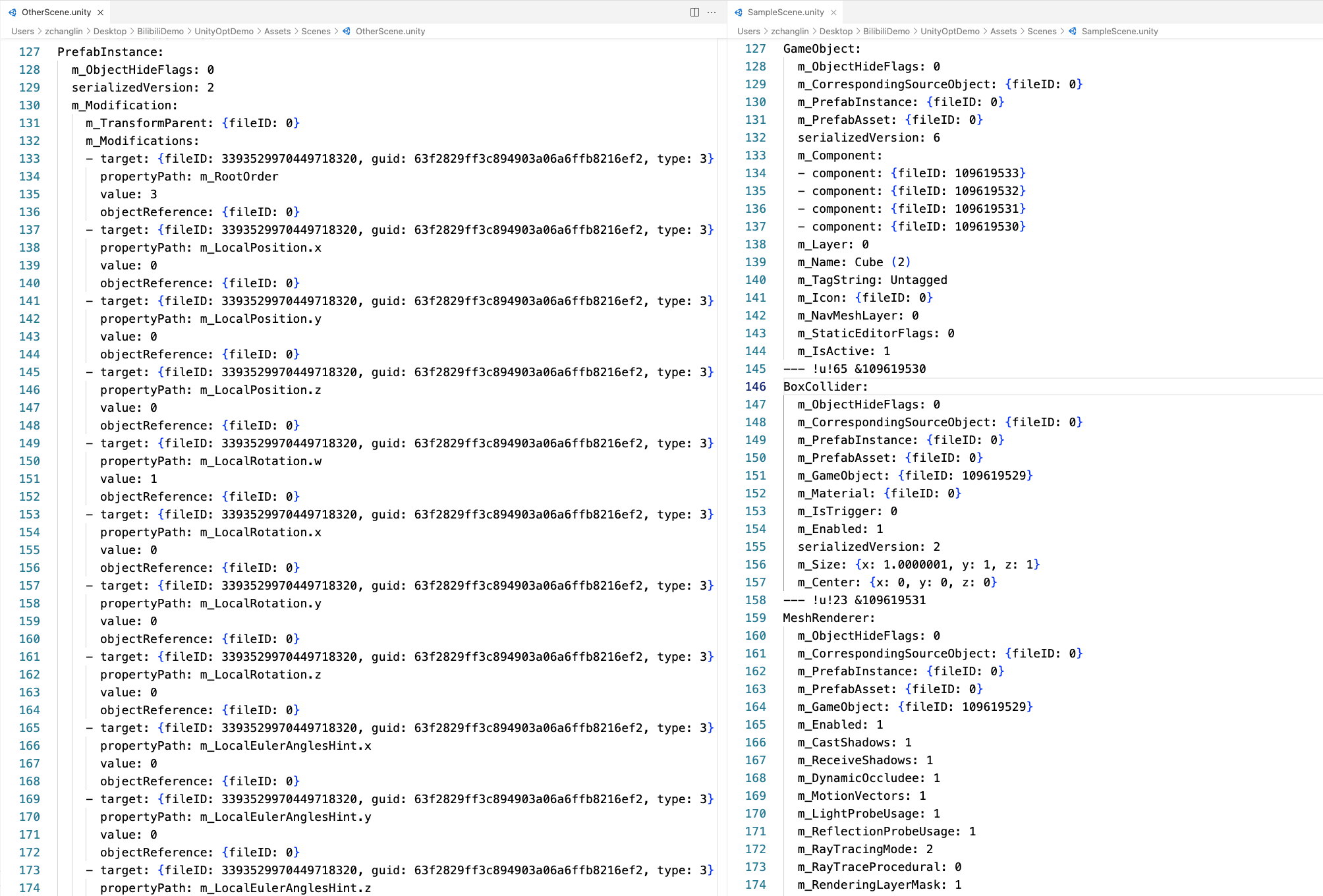Prefab节点构建场景,和直接创建的GameObject的场景对比如上图所示。