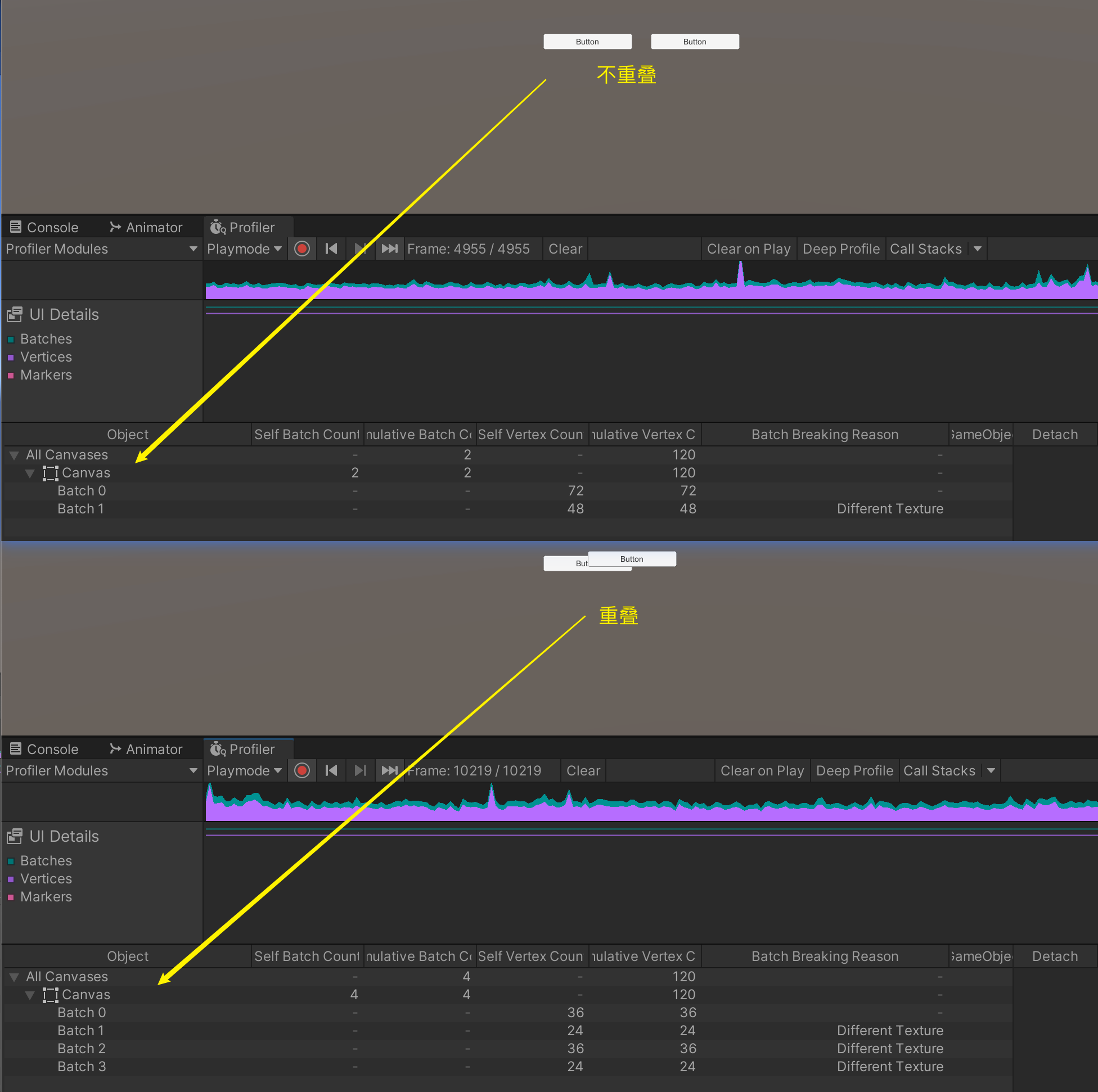 上图就是Canvas Over-dirty,Re-batch次数变多的情况。