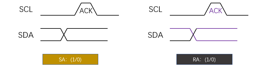 发送应答:在接收完一个字节之后,主机在下一个时钟发送一位数据,数据0表示应答,数据1表示非应答