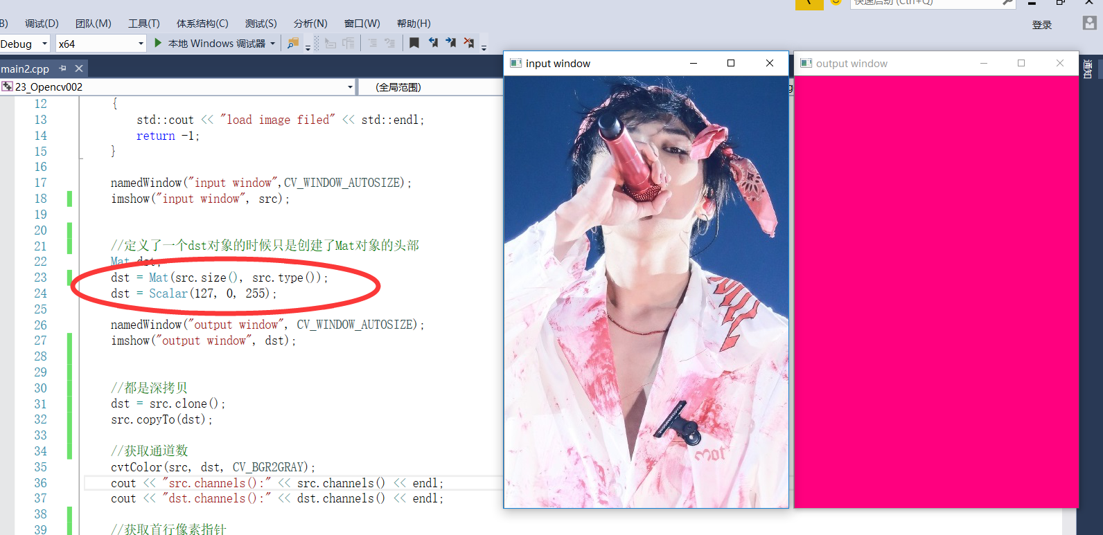 将m赋值给新创建的对象,此处不会对图像数据进行复制,m和新对象共用图像数据,属于浅拷贝 -