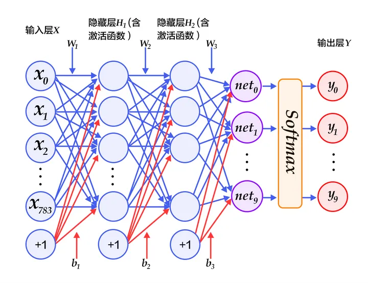 关于 softmax 激活函数:在多分类问题中,我们通常会使用softmax函数作为网络输出层的激活函数,softmax函数可以对输出值进行归一化操作,把所有输出值都转化为概率,所有概率值加起来等于1,softmax的公式为: $$ softmax(x){i}=\frac{\exp(x{i})}{\sum_{j}\exp(x_{j})} $$