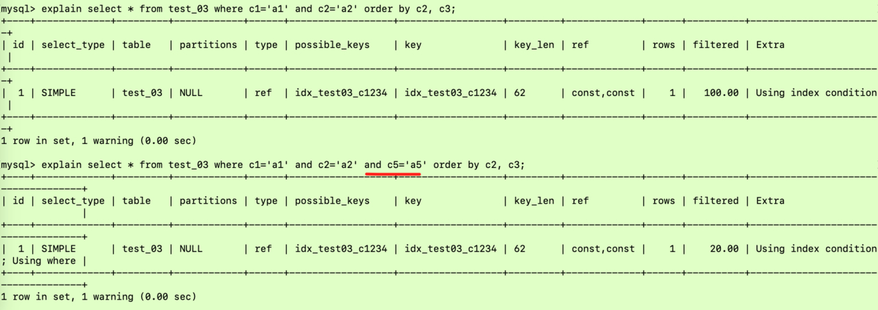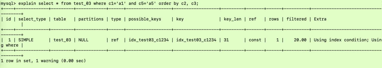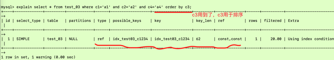 explain select * from test_03 where c1='a1' and c2='a2' and c3='a3' and c4='a4';