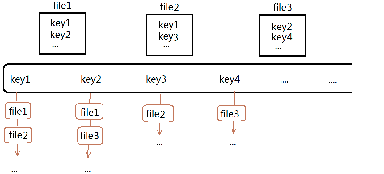 这种做法就是根据文件中的Key去建立哈希表,采用拉链法,凡是包含key的文件都会被挂载到对应的位置,搜索引擎就是这种做法,很显然那些能被百度排在最前面的位置的网页很可能就是在拉链的前几个位置,所以会呈现在前面!