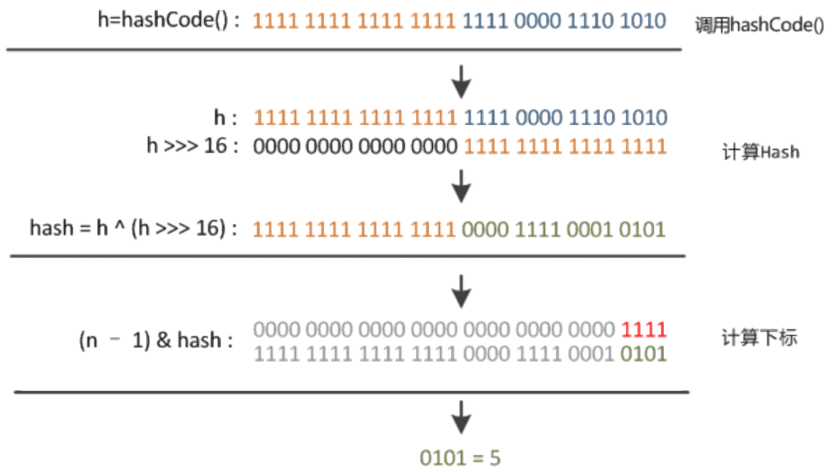 在JDK1.8的实现中,优化了高位运算的算法,通过hashCode()的高16位异或低16位实现的:(h = k.hashCode()) ^ (h >>> 16),主要是从速度、功效、质量来考虑的,这么做可以在数组table的length比较小的时候,也能保证考虑到高低Bit都参与到Hash的计算中,同时不会有太大的开销。