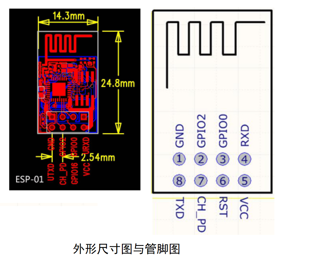 下面是其管脚图与外形尺寸图,如果PCB背板也有图的话那么直接根据背板的上的图也是OK的:
