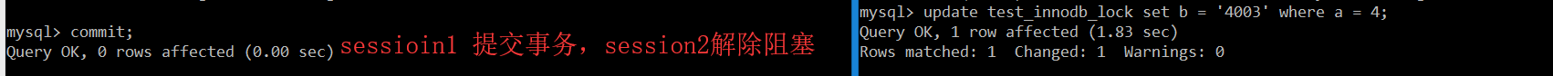 同样的,变成表锁的话session2就需要等session1 commit之后才能提交事务!