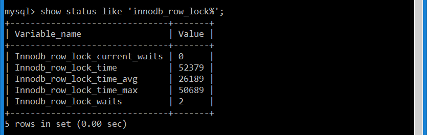 对于这5个状态变量,比较重要的主要是 Innodb_row_lock_time_avg (等待平均时长)、 Innodb_ row_lock_waits ( 等待总次数)、 Innodb_row_lock_time (等待总时长) 这三项。 尤其是当等待次数很高,而且每次等待时长也不小的时候,我们就需要分析系统中为什么会有如此多的等待,然后根据分析结果着手指定优化计划。
