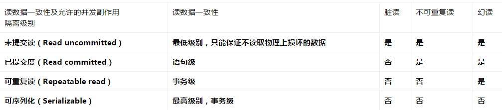 数据库的事务隔离越严格,并发副作用越小,但付出的代价也就越大,因为事务隔离实质上就是使事务在一定程度上 “串行化” 进行,这显然与“并发”是矛盾的。同时,不同的应用对读一致性和事务隔离程度的要求也是不同的,比如许多应用对 “不可重复读” 和 “幻读” 并不敏感,可能更关心数据并发访问的能力。