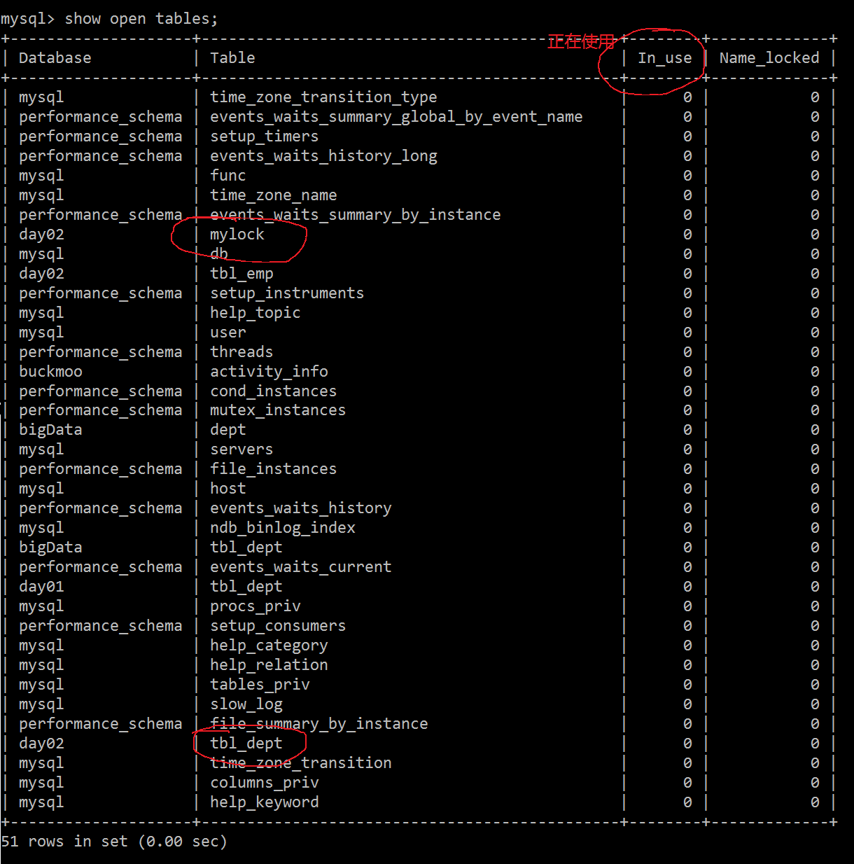 现在呢,给mylock上读锁,给tbl_dept上写锁:
