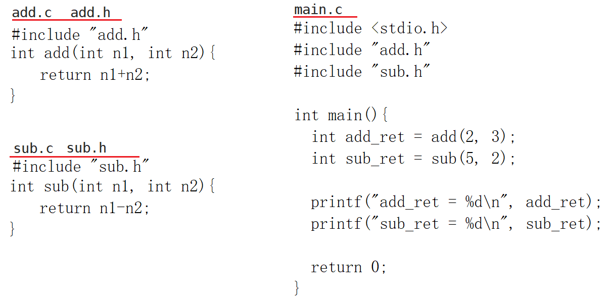 add.c add.h main.c sub.c sub.h