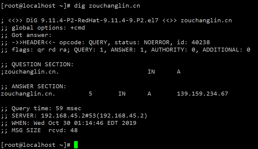 [root@localhost ~]# dig +trace zouchanglin.cn