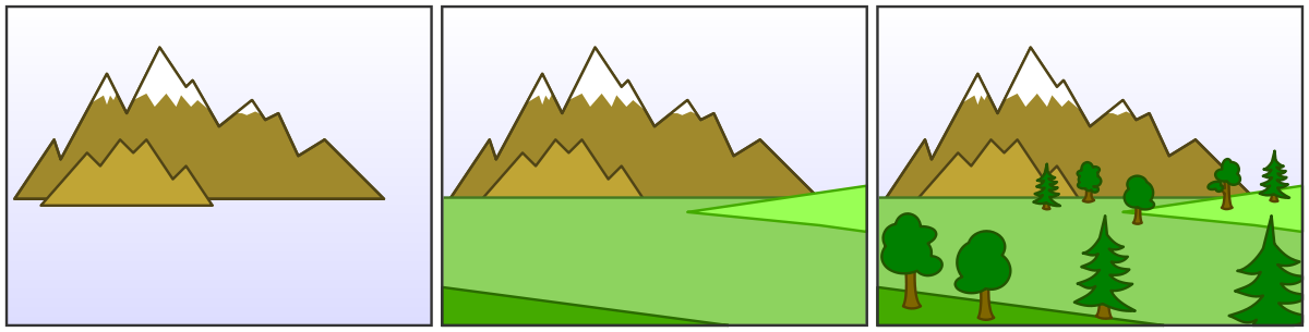 Painter’s Algorithm 画家算法的灵感来自于画家的绘画方式,从后往前绘制,在 framebuffer 中覆盖即可: