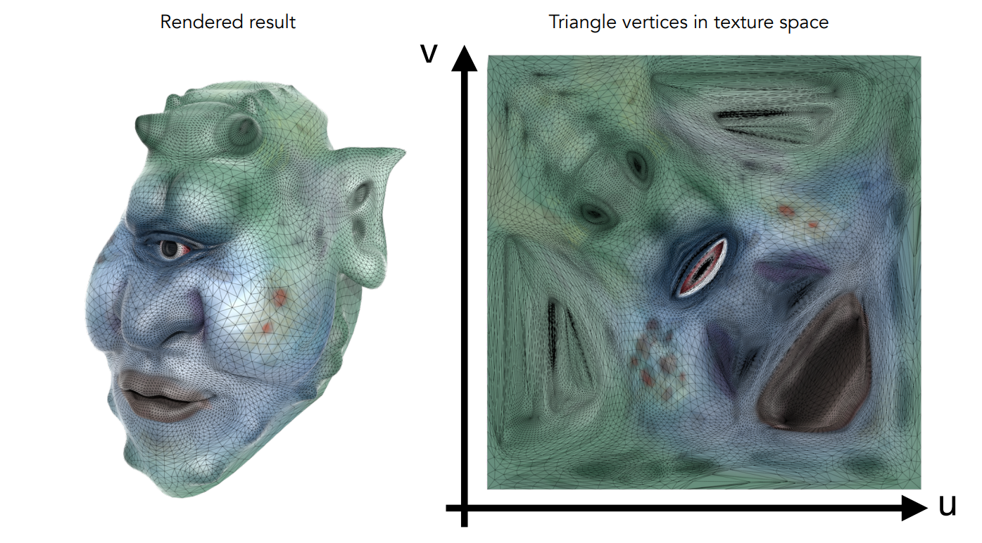 ,因此只需要在三维world space中每个顶点的信息之中存储下该顶点在 texture space 的 (u, v)